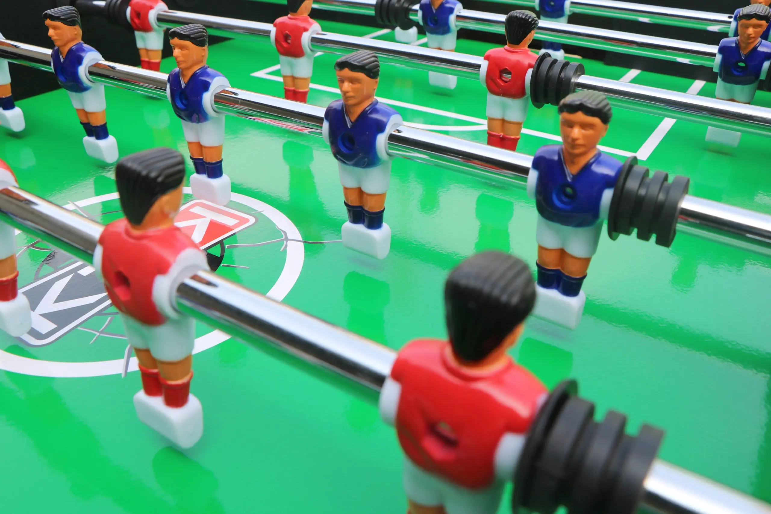 I love that this table came with two sets of foosball players! We tried only counterbalanced players for now and they work like a charm. We had a small problem with one part of the table so I contacted the customer service. They sent me that piece immediately, they are very professional and very helpful!